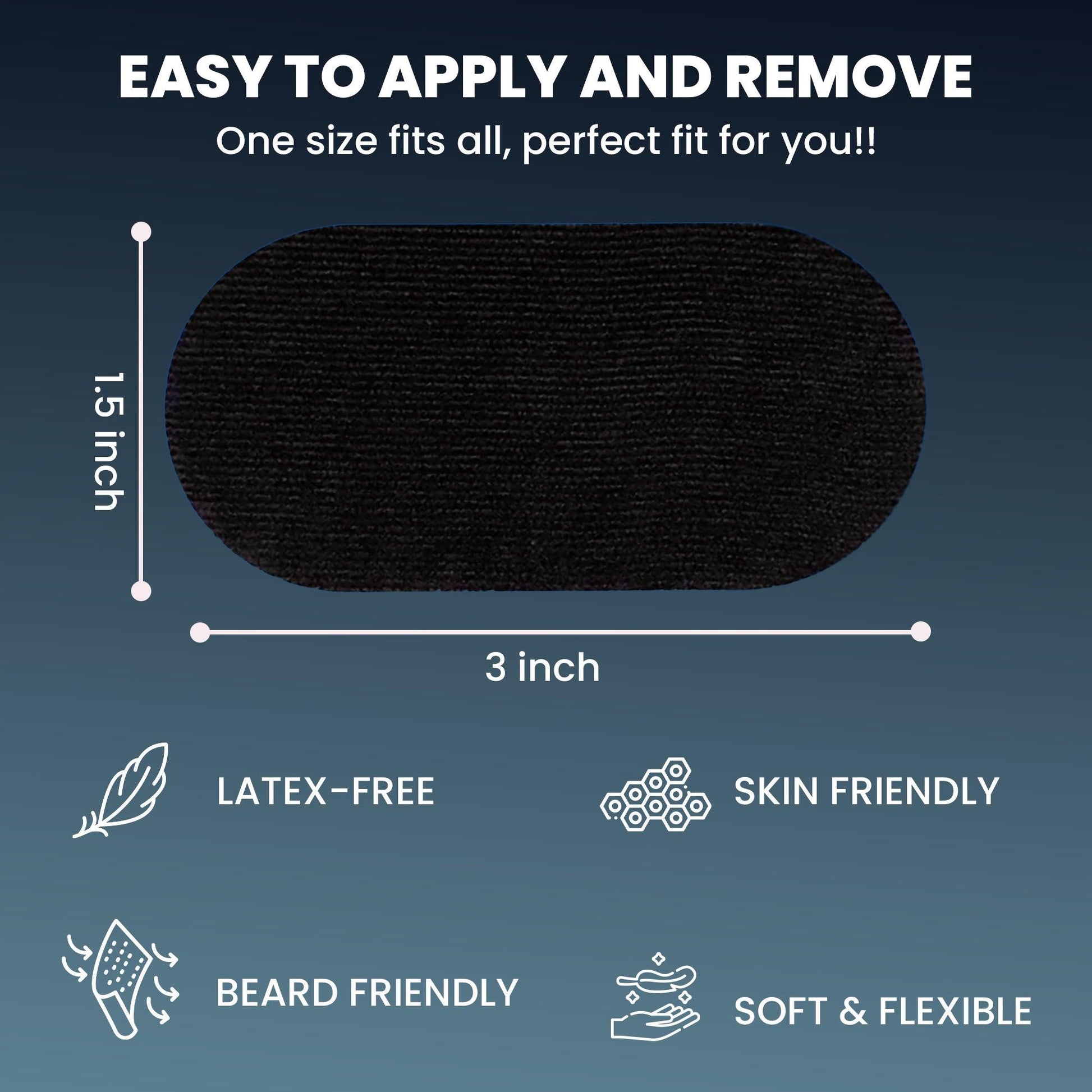 We’ve designed Easy Sleep’s fabric to be breathable and easy to apply and remove, even to sensitive skin and facial hair given that we use a hypoallergenic adhesive.